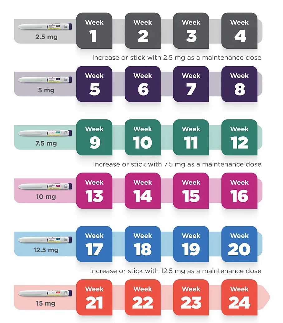 Mounjaro is available in 6 dosages, which you move up over time.